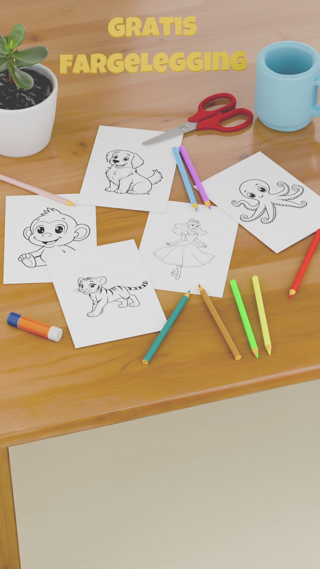 🎨 Gjør fargelegging til en morsom og kreativ aktivitet med denne gratispakken på 5 unike motiver! Perfekt for barn i alle aldre – enten hjemme, i barnehagen eller på skole/SFO.